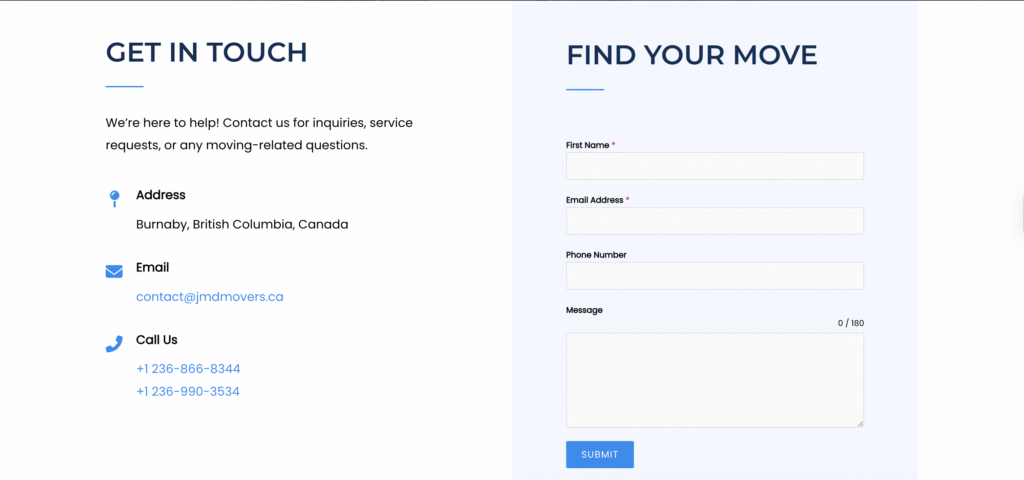 Developed a modern and user-friendly website for JMD Movers, a local moving company in British Columbia, Canada. Designed the brand logo and ensured the site effectively showcased their services and contact information.
