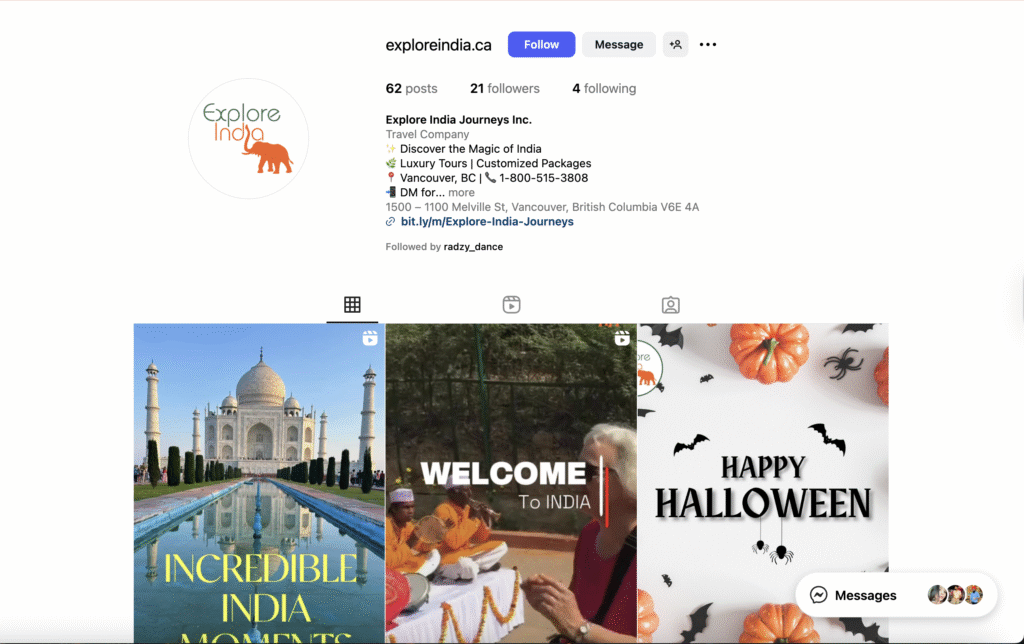 This project was executed during my part-time Job at Explore India Journeys Inc., a Canada-based luxury travel agency specializing in curated tours to India and Asia. I managed social media strategy and event promotions to enhance brand visibility and lead generation.
