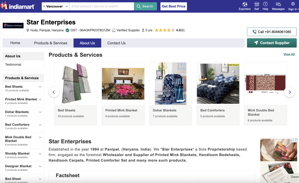 This project was executed as part of my contribution to our family’s textile business, Star Enterprises, where I spearheaded the company’s digital transformation to build its online presence and attract more B2B leads.